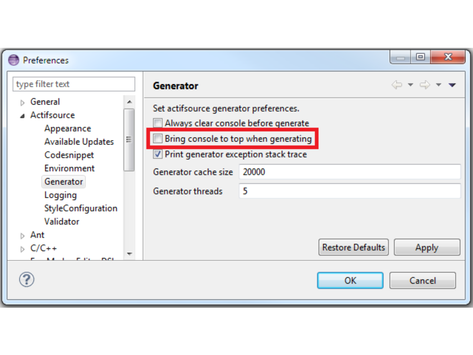 - Using OpenJ9 as Java Virtual Machine can make the Actifsource Generator working up to 50% faster!