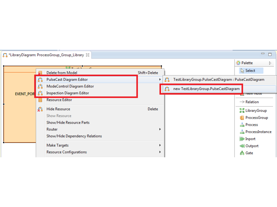 - #6665 Support create new pulseCast, modeControl or inspection diagram action from libraryGroup diagram
